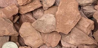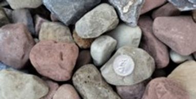 Mixture of 1″ & 2″ rock in muted red, tan, brown, grey, blue, cream and pink tones.