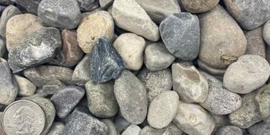 Aggregate Size: 3/4 - 1" Round 1 Cubic Yard covers: 100 Sq. Ft. at 3" Deep or 200 Sq. Ft. at 1.5" deep A medium-sized stone that comes in a shaded mixture of grays.